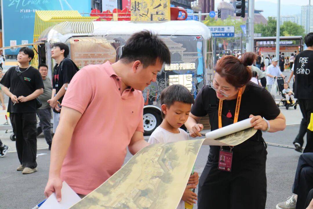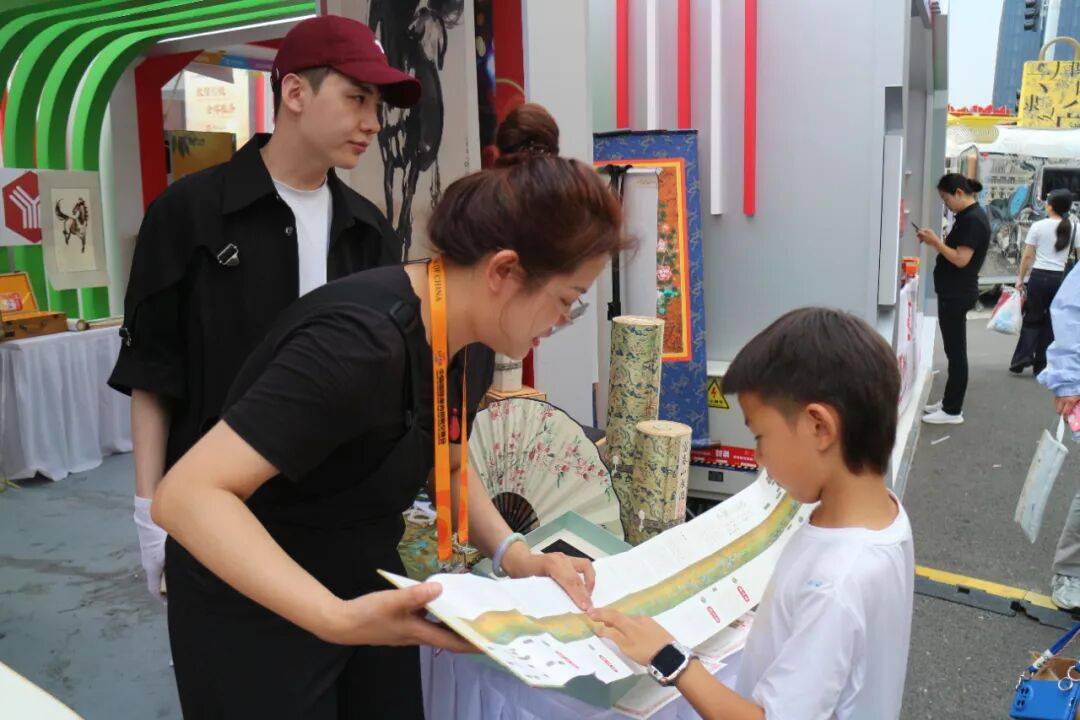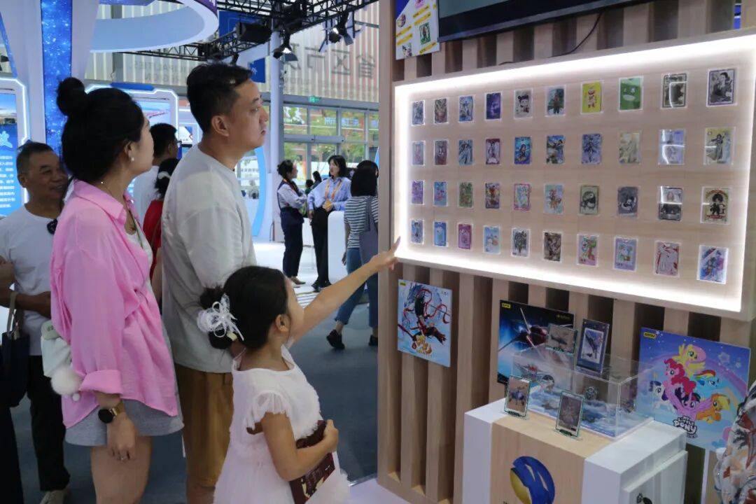 7米长的《清明上河图》复刻长卷缓缓展开,引得一对父子驻足观摩,小朋友接连向北京市印刷技术研究所有限公司的现场工作人员提问;浙江卡游科技有限公司出品的“中国战机收藏卡—致胜空天”系列卡牌,成为展会上的热门打卡点,军迷们隔着橱窗细细端详……
