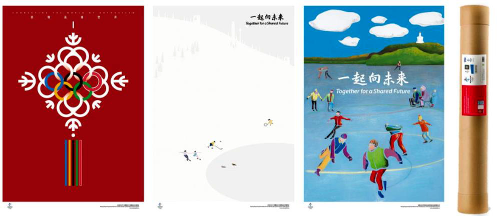 组合1:北京2022年冬奥会官方海报,共3张,售价148元/套(含收纳桶)。