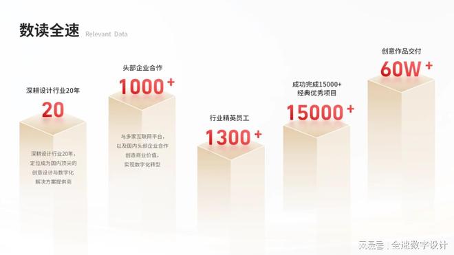 全速自成立以来,累计服务阿里、美团、字节等1000+头部互联网平台与国内领先品牌,为客户达成商业目标提供了优质的服务体验;同时,近年来屡获纽约数字奖金奖、法国设计奖金奖、美国缪斯奖金奖等多个国际奖项,彰显着全速的设计水平与国际视野。
